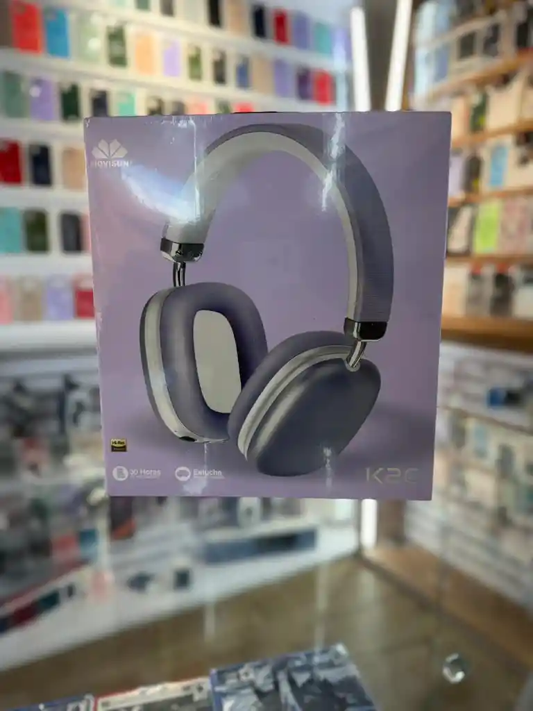 Color: Negro/Morado Audífonos diadema Bluetooth K20 Movisun con sonido claro y conexión inalámbrica estable gracias a Bluetooth 5.1. Batería de larga duración (aprox. hasta 22 h de reproducción continua) y diseño cómodo con almohadillas recubiertas, ideales para escuchar música o responder llamadas todo el día. Incluye ranura para microSD y entrada auxiliar para mayor versatilidad.
