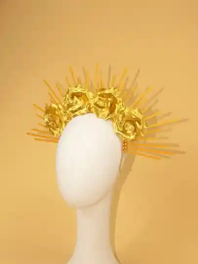 Diadema Diosa Hallo con Flores Fino y sensacional adorno para sacar de ti la máxima sensualidad en este Halloween Color: Dorado Material: Plástico PVC Medidas de la diadema: 35cm de Ancho x 25cm de alto