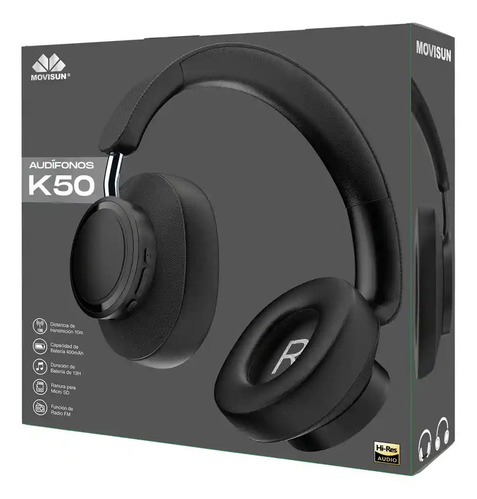 Características del producto • Conexión Bluetooth 5.4 • La diadema ajustable y las cómodas orejeras lo hacen un complemento ideal • El brazo del dispositivo se puede ajustar para un mejor ajuste y comodidad, lo que lo hace más versátil para diferentes usuarios. • Excelente calidad de sonido • Responde y finaliza una llamada desde los botones del auricular, no tendrás que sacar el teléfono del bolsillo • Compatible para iOS o Android • Mantenga alta calidad a distancia • Resistente al sudor • Luz LED indicadora • Entrada auxiliar • Botones para: Pausar, reproducir, pasar canciones y contestar llamadas. • Marca Movisun, diademas contramarcadas • Entrada de carga tipo C • Función de radio FM: permite sintonizar estaciones de radio locales • Incluye micrófono para llamadas • Duración de batería promedio hasta 13 Horas (según volumen) • Permite reproducir música directamente desde una tarjeta SD, ofreciendo una alternativa conveniente a la conexión Bluetooth. • Estabilidad de conexión • Alcance de promedio 10 metros • Tiempo de espera: 90 dias • Tamaño del altavoz: 40mm • Sensibilidad: 102dB 3dB • Impedancia: 32 Ω • Rango de frecuencia: 20Hz- 20KHz • Voltaje de carga: DC 5V / 280mA Garantía 3 meses por defectos de fabricación Contenido de la caja: • 1 Diadema Movisun K50 • 1 Cable de carga • 1 Cable auxiliar • 1 Manual de usuario