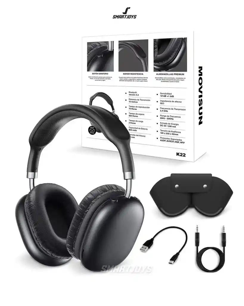 * Sonido de Alta Calidad: Disfruta de un sonido nítido y profundo gracias a su potente altavoz, ideal para todo tipo de música y contenido multimedia. * Bluetooth 5.3: Con la última versión de Bluetooth, disfruta de una conexión más estable y rápida, asegurando mayor compatibilidad con todos tus dispositivos. * Batería de Larga Duración: Con una capacidad de 800 mAh, estos audífonos ofrecen hasta 70 horas de reproducción, de acuerdo al volumen. * Comodidad Premium: Almohadillas de alta calidad que proporcionan un ajuste cómodo y aislamiento sonoro, asegurando una experiencia de uso superior y sin molestias. * Diseño Robusto y Resistente: Cuerpo más ancho y reforzado en la parte frontal, brindando mayor durabilidad y una sensación premium que asegura una larga vida útil. * Botón Giratorio Multifuncional: Controla tu música, llamadas y volumen de manera fácil e intuitiva con el práctico botón giratorio. * Distancia de Transmisión de 10 Metros: Mantén la conexión estable incluso a una distancia de hasta 10 metros de tu dispositivo. * Micrófono: cuentan con un micrófono de calidad inferior, no apto para llamadas. * Estuche Incluido: Protege tus audífonos y llévalos donde quieras con el práctico estuche que se incluye en la caja. Especificaciones: * Bluetooth: Versión 5.3 * Distancia de Transmisión: 10 metros * Tiempo de Espera: 500 horas * Tiempo de Carga: 2 horas * Capacidad de Batería: 800 mAh * Tamaño del Altavoz: 40 mm * Sensibilidad: 101dB ± 3dB * Frecuencia de Transmisión: 2.4 GHz * Rango de Frecuencia: 20Hz – 20kHz * Entrada de Energía: DC 5V / 280 mA * Tamaño de Auricular: 185 x 200 x 82 mm * Protocolos Soportados: A2DP, AVRCP, HSP, HFP 📦 ¡Listo para entregar! 💬 ¿Qué esperas? Cotiza ahora y llévatelo hoy mismo. No dudes en contactar con nuestros asesores para asesoría personalizada y realización de compra, recuerda que nuestros productos son totalmente nuevos y tienen la garantía del fabricante. Conoce nuestros puntos físicos. 🚙🏚️ 1) CALLE 48D #65A 57 LOCAL 220 Centro comercial carrusel - Medellín, Suramericana