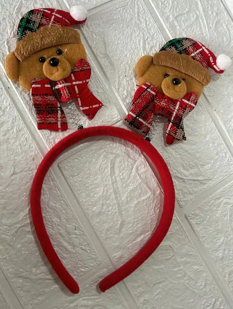 DIADEMA NAVIDAD OSO CAFE CON BUFANDA Y GORRO NAVIDEÑO COD.2647
