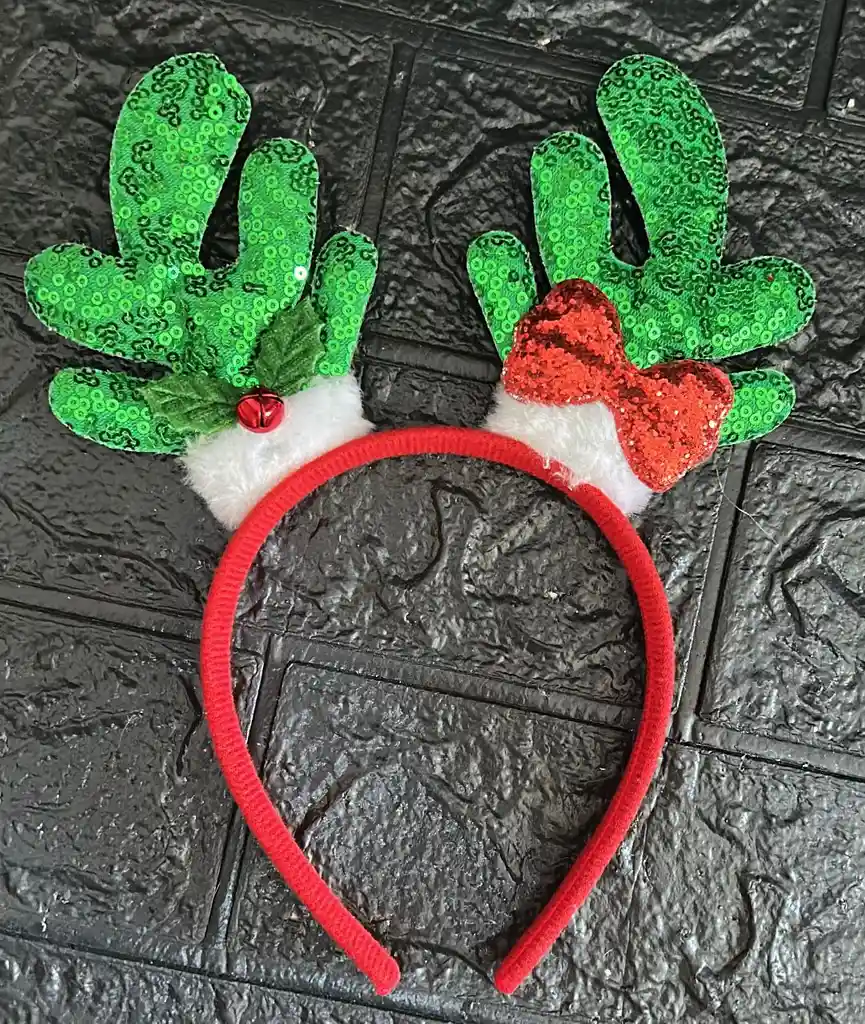DIADEMA NAVIDAD RENO LENTEJUELAS VERDE COD.4499