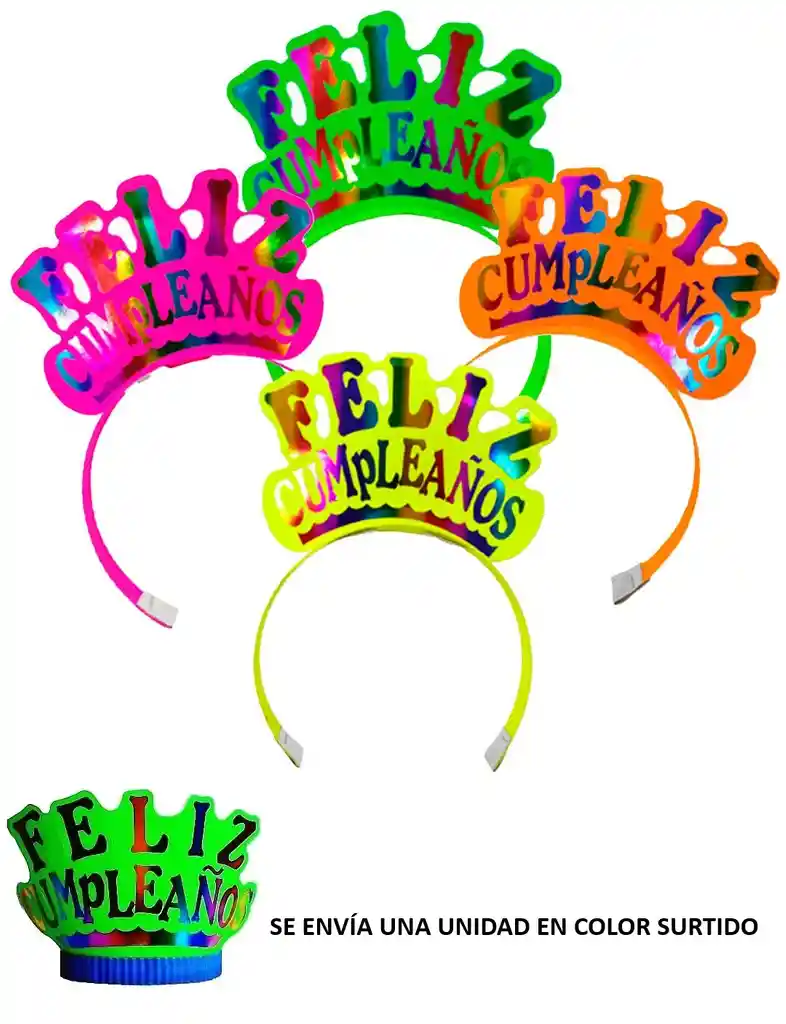 Diadema Vincha Corona Feliz Cumpleaños Colores Surtidos Metalizada 18 X 12 Cm. SE ENVIA UNA UNIDAD EN COLOR SURTIDO