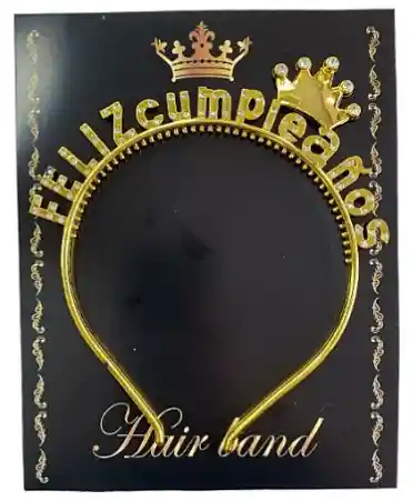 Diadema Vincha Feliz Cumpleaños Dorada