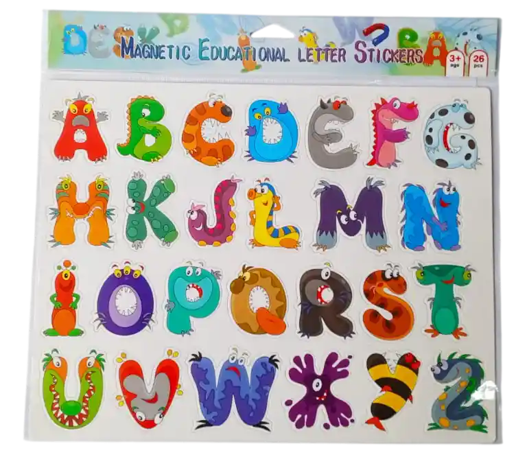 Incluye 26 letras del abecedario, cada una con un diseño de monstruo de dibujos animados único y colorido.
