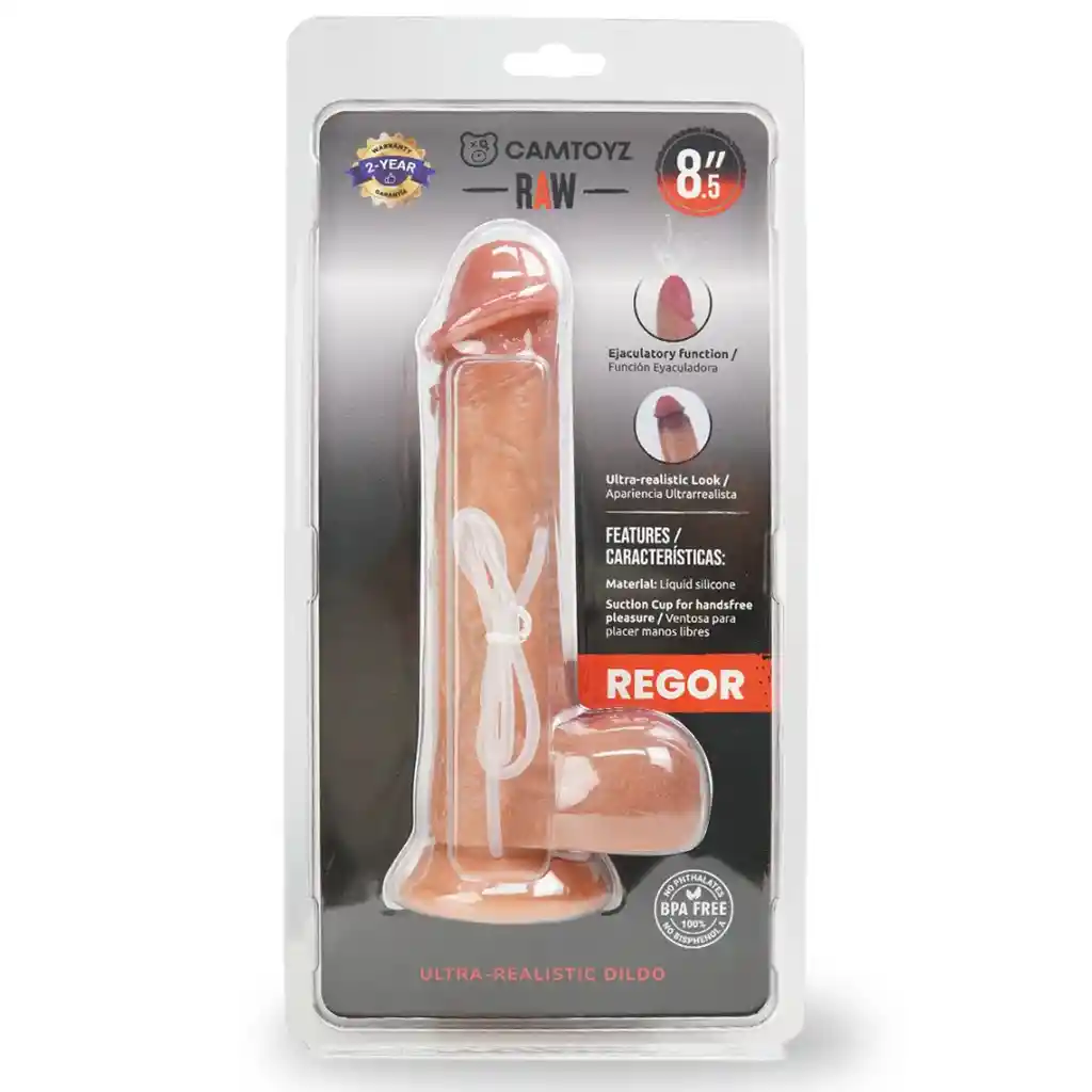 Descubre el placer del realismo con el Dildo Ultrarealista Raw Regor. Este impresionante juguete está diseñado para replicar fielmente la apariencia y textura del pene humano, utilizando silicona líquida de alta calidad para ofrecer una sensación auténtica al tacto. Ideal para quienes buscan una experiencia inigualable, Regor cuenta con una potente ventosa que permite el uso a manos libres, brindándote libertad total para explorar tus fantasías. Lo más emocionante es su función de eyaculación, que agrega un nivel extra de realismo y placer, llevando tus juegos a nuevas alturas. Aunque no incluye funciones interactivas con app, su diseño hiperrealista y capacidad de eyacular harán que cada momento sea inolvidable. ¡Vive una experiencia única y lleva tu fantasía al siguiente nivel con la línea Raw de Camtoyz! Marca CamToyz Garantía 1 año Limpieza Antes de usar el juguete por primera vez, y después de cada uso, este debe ser limpiado para reducir el riesgo de infecciones, mantener la higiene adecuada y evitar el deterioro rápido del juguete. Recomendamos un producto especial para limpieza óptima como los Limpiadores para Juguetes Elixir. Medidas Longitud Total: 22 cm Insertable: 16 cm Diámetro: 4 cm Material Silicona Líquida Recomendaciones de uso Para una experiencia más placentera, es ideal que el uso de este juguete sea con lubricantes a base de agua. Recomendamos el Gel Lubricante Íntimo Natural Elixir.No se deben usar lubricantes de silicona con juguetes de silicona. Podrían sufrir daños irreversibles. Presentación – Función Eyaculadora – Apariencia Ultra realista