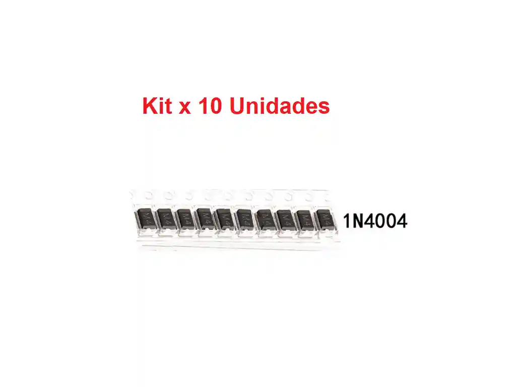 El diodo 1N4004 es un componente electrónico semiconductor, regularmente están fabricados de silicio o germanio, su función principal es permitir la circulación de la corriente en un solo sentido. John Ambrose Fleming fue un físico e ingeniero eléctrico británico realizo el descubrimiento en el año de 1904. Es considerado uno de los pioneros de la electrónica. La palabra diodo del vocablo griego se traduce como (pasaje angosto). El término se ocupa en el área de la electricidad e electrónica. Es considerado un semiconductor debido a que solo permite la circulación de flujo de electrones en una única dirección con las singularidades similares a un interruptor. Consta de dos terminales un ánodo (positivo) y cátodo (negativo). Una manera de saber cuándo un diodo está en cortocircuito es probando con el multímetro ambas direcciones dando una lectura de caída de tensión de (0 v a 0.4 v ). Es de saber que cuando un diodo se encuentra abierto no permite la circulación de energía eléctrica en ambos sentidos. El multímetro mostrara OL (circuito abierto) en las dos direcciones. Consiste en permitir el flujo de energía eléctrica en un solo sentido, por lo cual se comporta de dos maneras: Polarización directa: permitiendo el paso de la corriente eléctrica. Polarización inversa: impidiendo el paso de la corriente eléctrica. Se utilizan regularmente como rectificadores de señales, aplicándolo en fuentes de CA a CD. Si usted busca comprar un diodo (1N4001) con alguna característica en especial. Aquí en las especificaciones técnicas le dejamos los puntos a considerar. Voltaje inverso pico repetitivo: 400 Volts Voltaje de funcionamiento (@ 1 A): 1.1 Volts Corriente de rectificación promedio: 1 Amp Corriente pico no repetitiva en medio ciclo de onda senoidal (8.3 ms): 30 Amp Disipación de potencia ( @ 25 °C): 3 Watts Rango de temperatura de la unión: -55 a 175 °C Capacitancia total (at 4V, 1 MHz): 15 pF Tipo de encapsulado: DO-214AC Peso: 0.30 gramos (Aproximadamente) LA COMPRA INCLUYE: 10x DIODO SMD 1N4004 M4