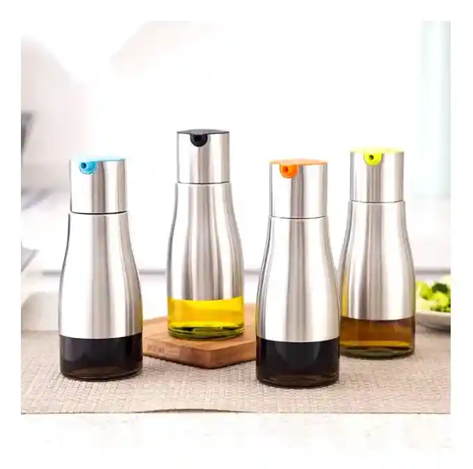 Botella de aceite Anti-goteo: Gracias al diseño funcional de la boca de aceite, no más goteo, la función anti goteo del dispensador de aceite garantiza que tu cocina se mantenga limpia. Dispensador premium: La carcasa de acero inoxidable aporta una apariencia premium y protección de seguridad al dispensador de vinagre. Lujoso de acero inoxidable y vidrio de calidad superior, seras una estrella de la cocina elegante y clásica. Fácil de usar: El dispensador de aceite/vinagreta hace que sea increíblemente fácil de engrasar o avinagrar cualquier plato. Desenrosque suavemente la tapa de acero inoxidable y la carcasa para enjuagar con agua. No te preocupes por el aceite. Contenedor de aceite perfecto: La botella dispensadora de aceite de cocina es adecuada para aceite de oliva, vinagre, salsa de soja y jugo. . . La mayoría de salsas. Regalo adecuado para todos, ya sea familia, amigos o inauguración de la casa. Descripción Dispensador de vinagre de acero inoxidable a prueba de fugas, botella dispensadora de aceite de cocina sin goteo con parte inferior de vidrio para cocina, aderezo de ensalada. Característica - Color: Naranja, Azul, Negro y Verde. - Material: Acero Inoxidable y Vidrio. - Tamaño: 18 x 6,8 cm.