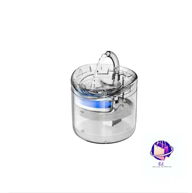Dispensador de agua para mascotas color transparente, con filtro y fabricado en excelente material. Mantiene el agua limpia y fresca, ideal para el cuidado diario de perros y gatos.