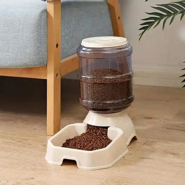 dispensador automático utiliza la potencia de la gravedad para rellenar automáticamente el tazón de comida