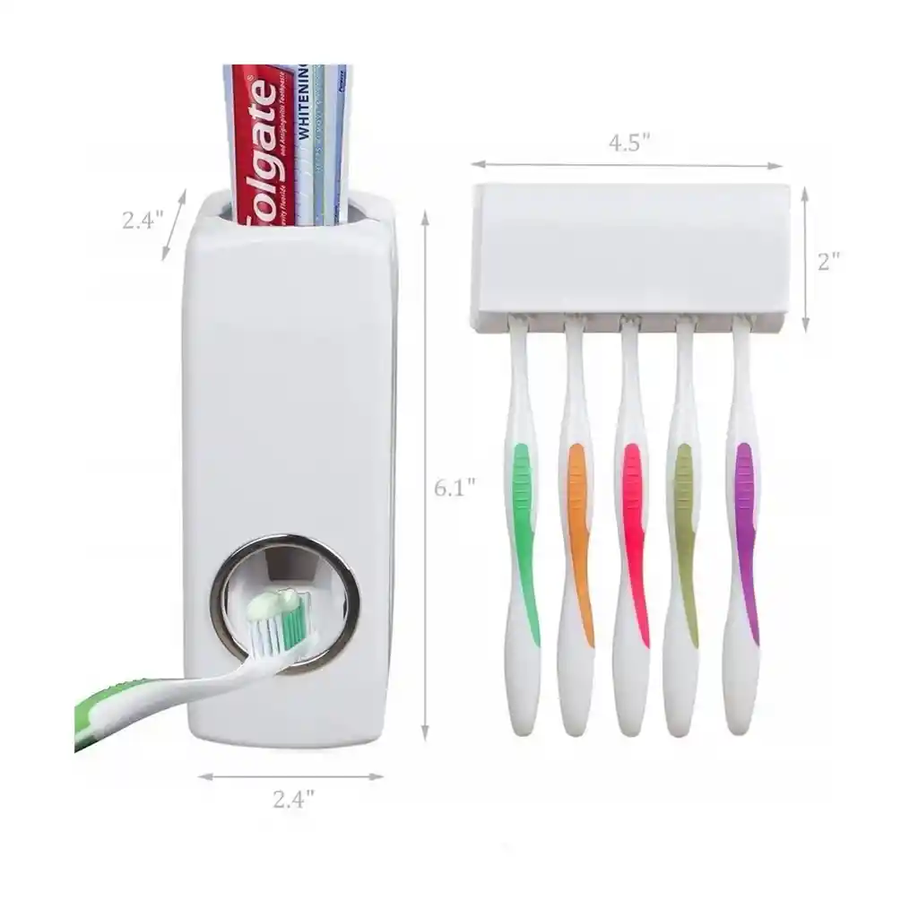 *NO INCLUYE CEPILLOS. *Extracción de cantidad de pasta dental y manos libres: proporciona una operación sin contacto, ofrece una cantidad consistente de pasta de dientes, eliminando residuos y desorden. Ideal para niños y personas mayores *Ordenamiento y a prueba de polvo: el soporte de pared ayuda a optimizar el espacio de la encimera. Capacidad para hasta 5 cabezales de cepillo de dientes, mantiene los cepillos secos y limpios. ( NO INCLUYE CEPILLOS )