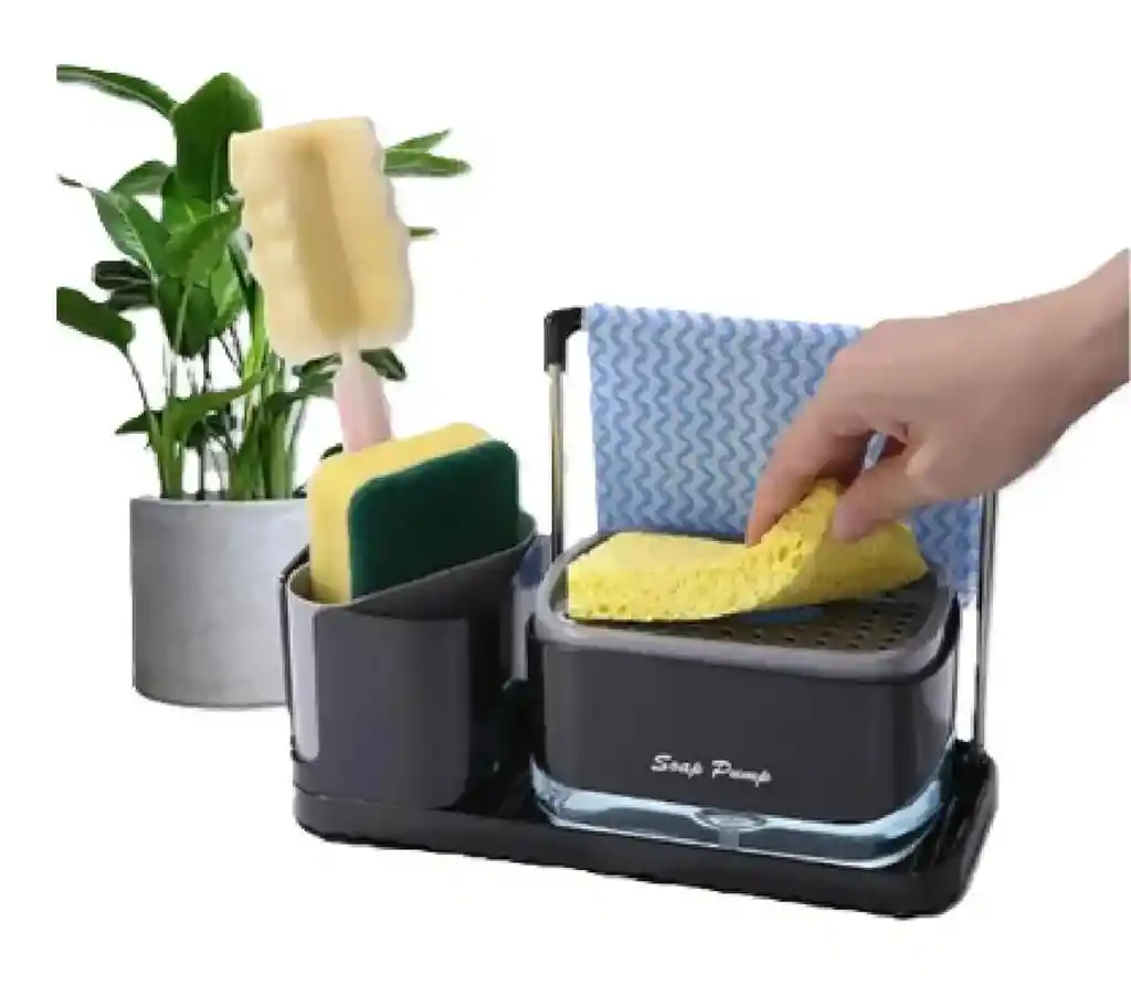Organizador de bandeja multifuncional: juego de dispensador de jabón 4 en 1, incluye soporte para cepillos, soporte para trapo, bandeja de drenaje, dispensador de jabón con soporte para esponja, perfecto para almacenar cepillos, esponjas, jabón para platos, cepillo para tazas, trapos, etc. Extraíble, fácil de limpiar: este dispensador de jabón para platos es extraíble, se puede utilizar en la cocina de acuerdo a tus necesidades y hacer que la encimera de la cocina esté limpia y ordenada. Fácil de usar: nuestro organizador de fregadero está diseñado para facilitar la dispensación de jabón. El práctico funcionamiento del drenaje de agua permite un lavado más rápido de los platos, ahorra tiempo de lavado y ahorra espacio en la estufa. Duradero y seguro: soporte de esponja para dispensador de jabón hecho de material ABS y policarbonato de alta calidad, no se corroe ni se oxida fácilmente, es seguro, protege el medio ambiente y la salud. Contenido y dimensiones del paquete: nuestro dispensador de jabón tiene capacidad para hasta 12.5 onzas líquidas de jabón para platos. Fácil de llenar con un embudo. Te damos una esponja y un embudo. Dispensador de jabón individual: 5.5 x 4.0 x 3.3 in, tamaño total del producto: 9.3 x 7.3 x 4.0 in.