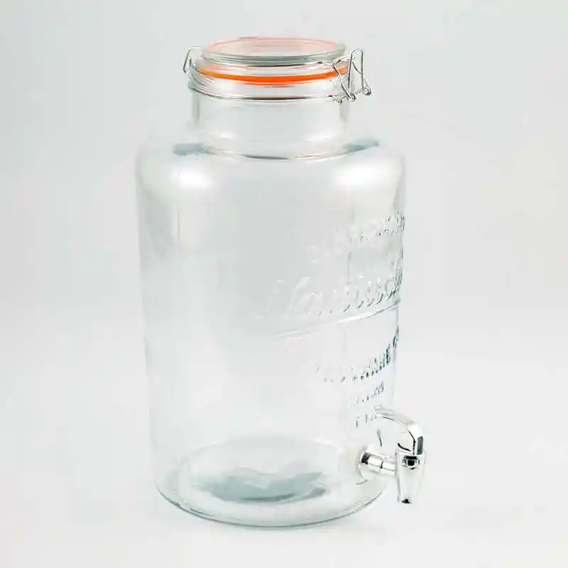 Dispensador Excellhouse de 8 litros en vidrio transparente, con tapa hermética de cierre metálico y sello en s...Ver más