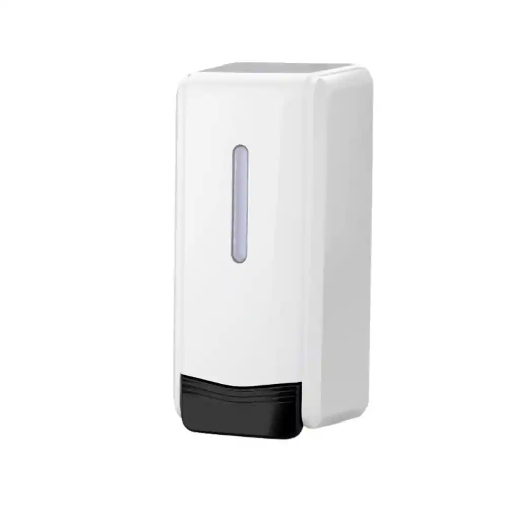 Dispensador de pared para jabón líquido, gel antibacterial o shampoo, diseñado para brindar higiene y practicidad en cualquier espacio. Cuenta con un diseño compacto y moderno, ideal para baños, cocinas u oficinas. Incorpora un visor frontal transparente que permite visualizar fácilmente el nivel del contenido, evitando recargas inesperadas. Su sistema de pulsador inferior garantiza una dosificación controlada y cómoda en cada uso