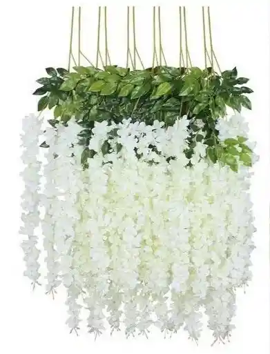 🤍 Docena de Glicina Wisteria Blanca – 80 cm Aporta luz, frescura y elegancia atemporal a tus espacios con nuestra Docena de Glicina Wisteria Blanca de 80 cm, una opción decorativa sofisticada y versátil que captura la belleza de las glicinas naturales sin necesidad de mantenimiento. Su caída delicada y su color blanco puro la convierten en la flor perfecta para ambientes que buscan serenidad, armonía y distinción. Gracias a su diseño realista, esta glicina artificial crea un efecto visual encantador en arreglos florales colgantes, centros decorativos o ambientaciones románticas para eventos y celebraciones. Una flor ideal para quienes desean un toque natural y refinado que dure en el tiempo. ✨ Características destacadas: Color blanco puro y elegante: Aporta claridad, amplitud y sofisticación a cualquier espacio. Largo total de 80 cm: Ideal para colgar desde techos, muros, repisas o como parte de instalaciones florales. Materiales de alta calidad: Fabricadas en tela y plástico con acabados realistas y duraderos. Uso exclusivo en interiores: No se recomienda su uso en exteriores, ya que la exposición al sol o la humedad puede afectar su color y forma. Fácil de usar y combinar: Perfecta para complementar arreglos florales, follajes o estructuras decorativas. 🏡 Ideal para: Decorar interiores: salas, dormitorios, comedores, entradas, oficinas. Eventos especiales: bodas, comuniones, baby showers, aniversarios. Proyectos creativos: muros florales, guirnaldas, arcos decorativos y más. Espacios comerciales: vitrinas, escaparates, salones de belleza o cafés. 🌿 Beneficios adicionales: Realismo visual y al tacto: Diseño natural que simula flores frescas en todo momento. Estilo romántico y versátil: Encaja con decoraciones modernas, clásicas, minimalistas o bohemias. Sin mantenimiento: No requiere agua, luz ni poda. Decoración limpia y segura: No mancha, no genera residuos ni atrae insectos. La Docena de Glicina Wisteria Blanca de 80 cm es una apuesta segura para quienes buscan belleza floral duradera y sin complicaciones. ¡Transforma cualquier espacio en un entorno delicado, luminoso y lleno de estilo!