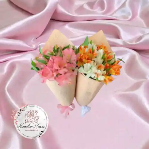 Dos encantadores ramos de alstroemerias en tonos rosados y naranjas, envueltos en papel Kraft Una combinación vibrante que transmite cariño, gratitud y buena energía. ideal para Cumpleaños, Regalos entre amigas o hermanas, tarjeta personalizada escríbelo en el chat.