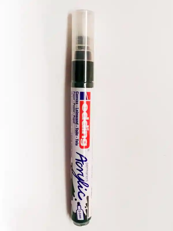 Marcador acrílico para pintar en superficies tanto claras como oscuras, ideal para materiales como lienzos o papel para pintar. El grosor de trazo de la punta redonda es de 2-3 mm.