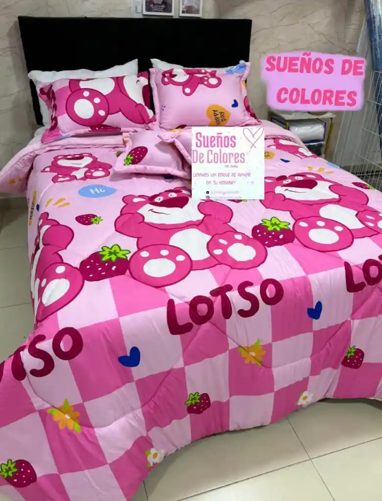 Gran variedad de diseños en todas las medidas de cama, sobre pedido fabricantes directos. incluye 5 piezas 2 cojines rellenos 2 fundas almohada 1 edredon acolchado