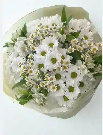 Bouquet con aprox. 2 paquetes de margarita y 1 paquete de astromelia. Nota: La flor puede ser sustituida dependiendo la disponibilidad de color y del producto “Mensaje Personalizado” máximo de 30 caracteres (Dejar el mensaje en el chat, los comentarios no se previsualizan para la tienda por lo que si se dejan allí no podrá ser incluido).