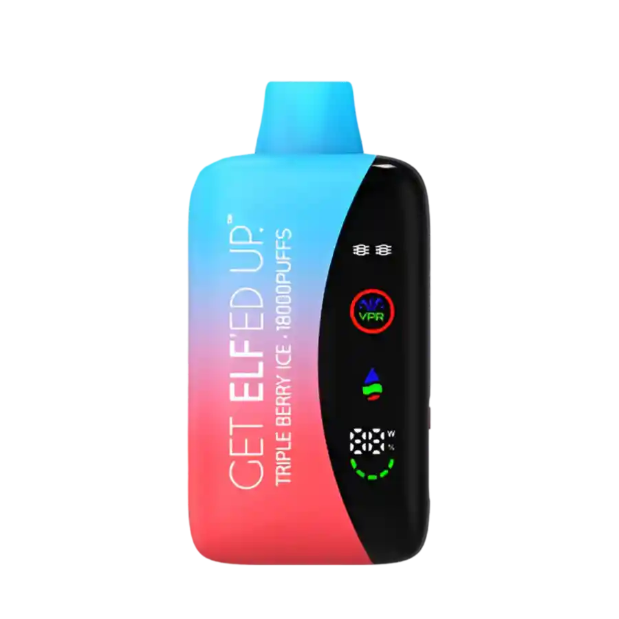 ELF VPR 18K 18000 Puffs Disposable, offers up to 18K puffs, 18mL capacity, dual mesh coils, adjustable airflow, and a smart LED display with an 800mAh battery. Product Specifications: 5% Salt Nicotine 18mL Salt Nic Vape Juice 800mAh Built-In Battery USB-C Charging Dual Mesh Coils Smart LED Indicator Screen Draw Activated Up to 18,000 Puffs