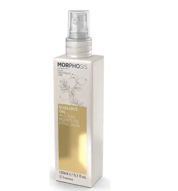 ¿Cabello seco, opaco y sin vida? La Emulsión Moprhosis Sublims Oil All Day, enriquecida con aceite de argán puro, fórmula que nutre y humecta la fibra capilar dejando el cabello suave y brillante. Este acondicionador sin enjuague elimina los nudos y controla el frizz. Además, gracias a su textura ligera se absorbe rápidamente sin dejar residuos mientras deja tu cabello con un delicioso y suave aroma.