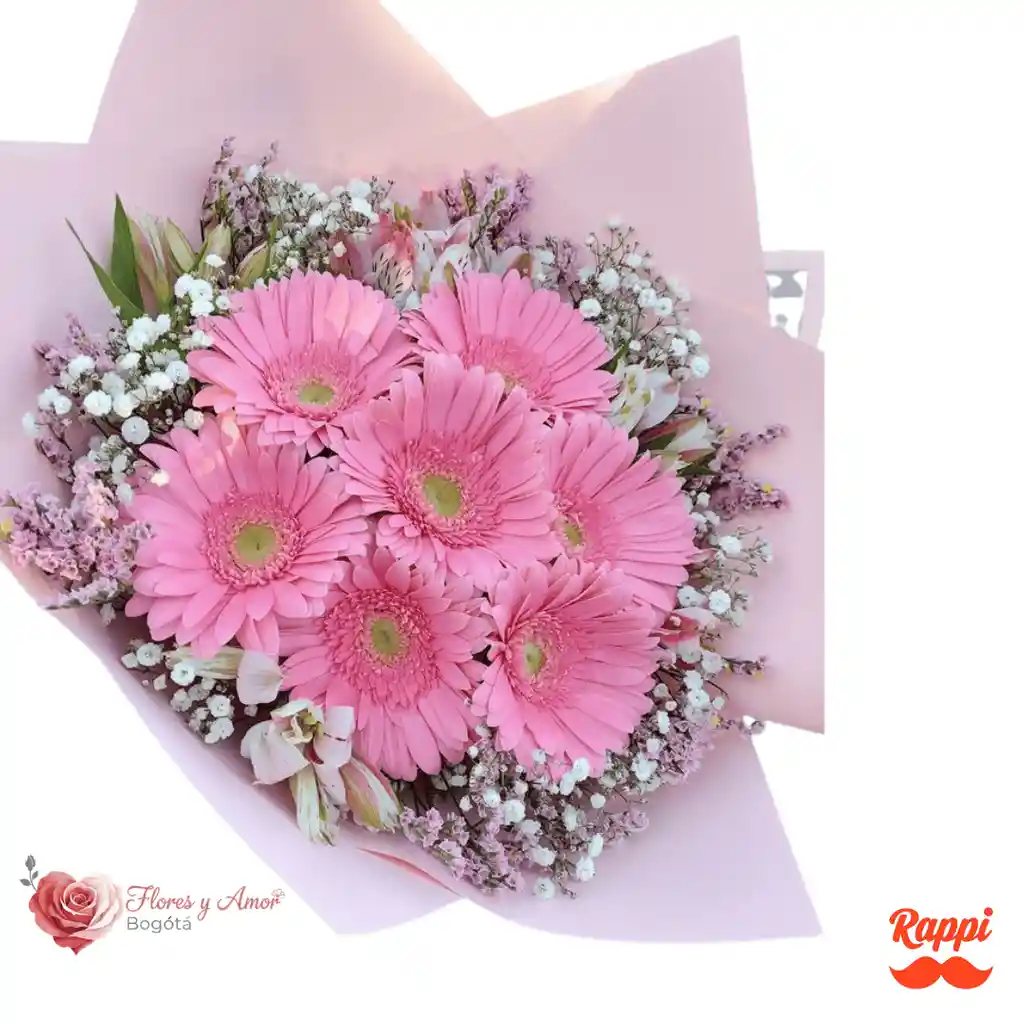 Gerberas rosadas protagonistas que aportan frescura y alegría, acompañadas de astromelias que suman textura y elegancia, mientras la gipsófila crea un efecto ligero, delicado y abundante que realza todo el bouquet. Es un arreglo que transmite vitalidad, dulzura y movimiento, con una mezcla floral que se ve grande, armoniosa y muy llamativa. Perfecto para sorprender con un detalle moderno, romántico y altamente fotogénico que llena cualquier espacio de color y vida.