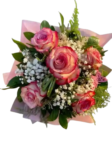 Un bouquet sofisticado de rosas en tonos rosados con delicados complementos florales, perfecto para expresar amor y ternura con estilo. Flores frescas de calidad premium, seleccionadas y armadas profesionalmente para un diseño armónico y elegante. Algunas flores pueden variar según la disponibilidad de temporada, manteniendo siempre la estética y el valor del arreglo. Incluye tarjeta personalizada sin costo adicional.