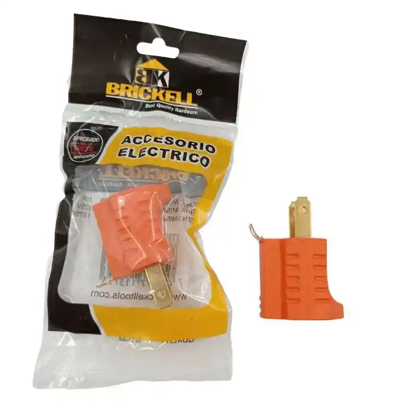 Enchufe adaptador eléctrico naranja de goma, duradero y visible. Ofrece conexión segura y resistente para uso doméstico o en ambientes de trabajo
