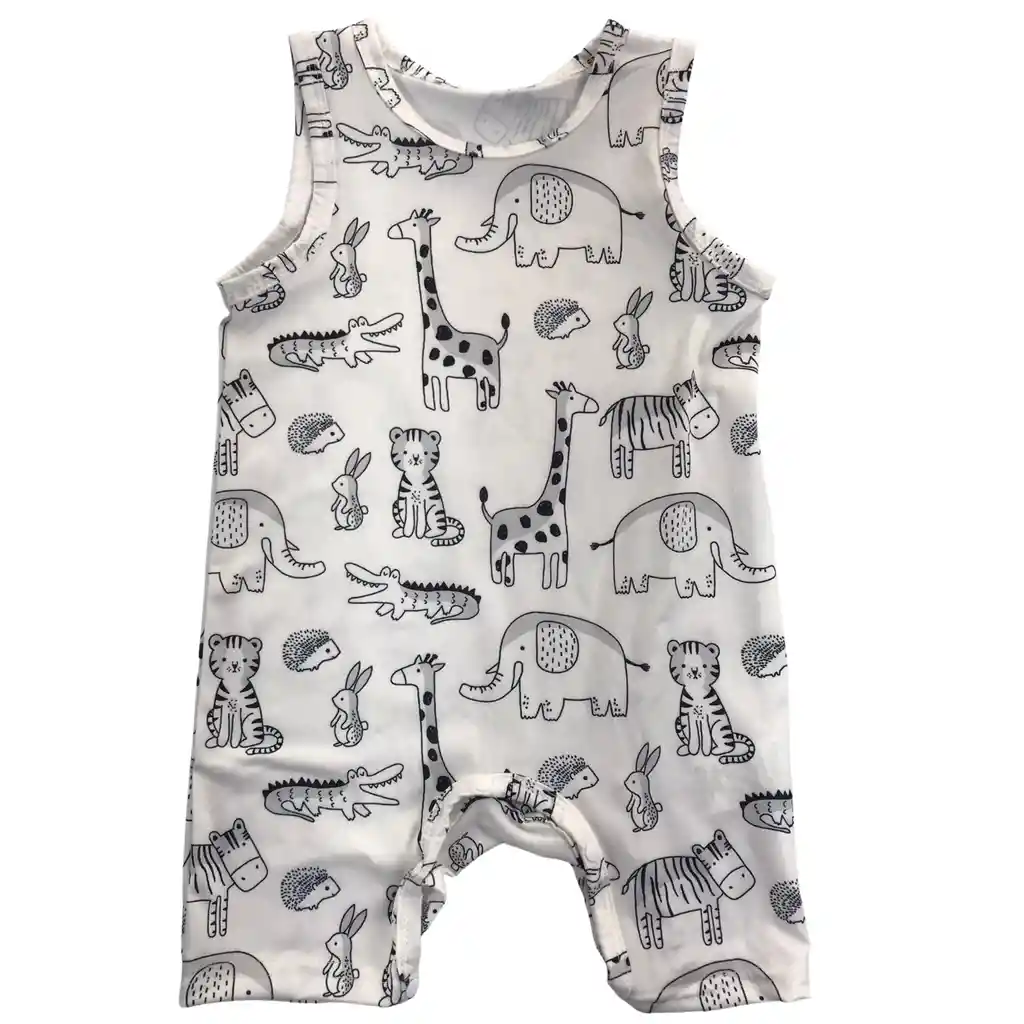 Enterizo para bebé de 9 a 12 meses con diseño sin mangas, ideal para climas cálidos o para usar con camiseta debajo. Estampado de animales tipo safari en tonos neutros que aporta un estilo moderno, tierno y fácil de combinar. Confeccionado en tela suave y ligera, delicada con la piel del bebé. Cuenta con broches en la parte inferior que facilitan el cambio de pañal y brindan mayor comodidad durante el uso diario. Perfecto para el día a día, paseos o como opción práctica y linda para regalar.
