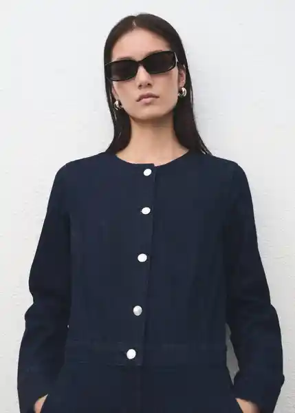 Cierre Delantero Con Botones Cuello Redondo Diseño Largo Diseño Recto Dos Bolsillos Laterales Manga Larga Con Puños Abotonados Tejido de Algodón Estilo Tejano Vaquero - 27091247_To.