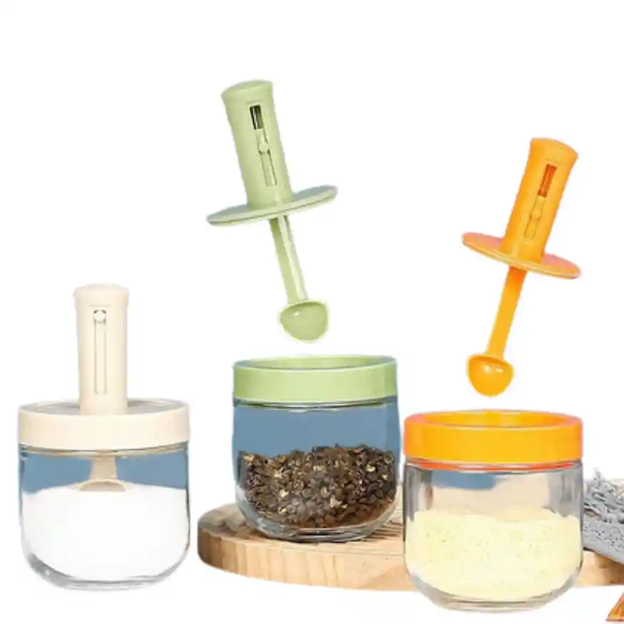 Color: naranja, verde y gris Recipiente de especias sellado contra la humedad, azucarero con tapa y cuchara ajustable, juego de recipientes de sal y azúcar, recipientes de vidrio transparente para encimera de 10 onzas Especificaciones: Material: PP+vidrio Tamaño: 3.0*5.4 in Color: blanco, verde, naranja. El paquete incluye: 3 tarros de condimentos