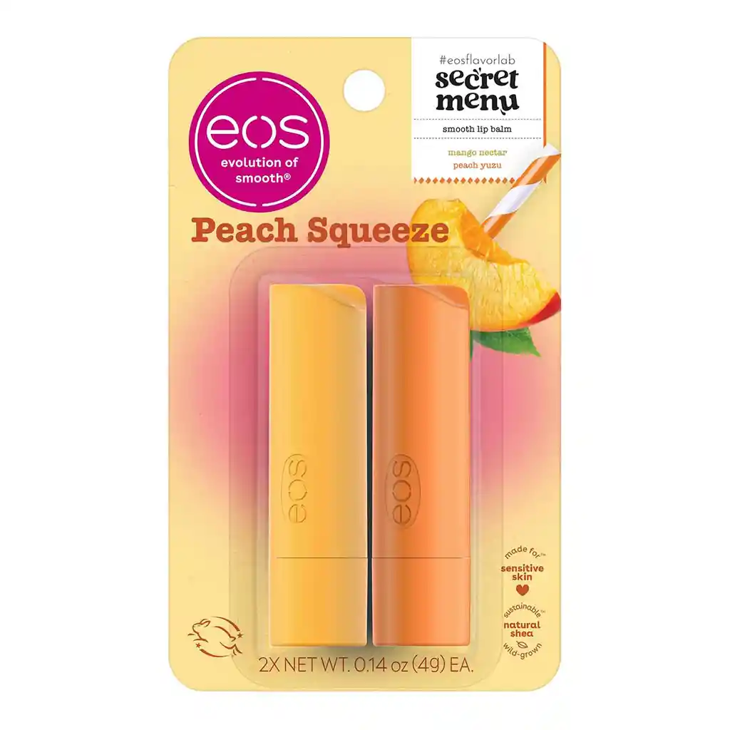 El Eos Bálsamo Labial Peach Squeeze combina el delicioso aroma del mango néctar y durazno yuzu con una fórmula 100% natural diseñada para hidratar, suavizar y proteger los labios. Enriquecido con manteca de karité, aceites naturales y antioxidantes, nutre en profundidad, dejando los labios visiblemente más suaves y con un brillo natural. Ideal para uso diario, brinda una sensación fresca y afrutada que revitaliza los labios secos y agrietados. Libre de parabenos, gluten y aceites minerales, este bálsamo es la elección perfecta para mantener tus labios saludables y radiantes en cualquier momento del día.