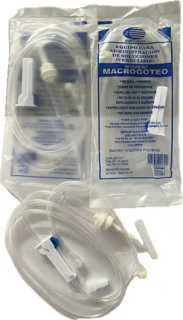 El equipo de infusión de macrogoteo puede administrar al paciente volúmenes de solución mayores a 75 mililitros por hora, por lo que se utilizará en el caso de aquellas afecciones en las que se requiera administrar una mayor cantidad de solución con un factor de goteo alto. Conector Luer Lock ( De Rosca )