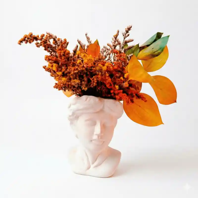 Este diseño floral escultórico es una interpretación contemporánea del arte clásico, donde la forma, la textura y el color dialogan en perfecta armonía. Su base escultórica de líneas suaves, inspirada en la estética atemporal de la escultura, se convierte en el soporte ideal para un diseño floral preservado cuidadosamente trabajado a mano. Tiempos de entrega: de 1 a 4 días según disponibilidad de flores