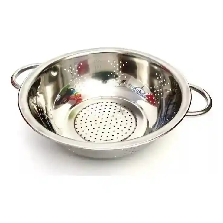 Este escurridor de frutas está elaborado en acero inoxidable resistente, ideal para lavar y drenar frutas, verduras y otros alimentos de manera rápida y eficiente. Su diseño perforado permite un filtrado uniforme y un escurrido estable sin retener agua. La estructura metálica soporta un uso frecuente en cocina doméstica o profesional, manteniendo su forma y brillo con el paso del tiempo. Las asas laterales facilitan su manipulación y permiten transportarlo con seguridad incluso cuando contiene alimentos húmedos. Medidas del producto Diámetro aproximado: 20–26 cm Altura aproximada: 9–12 cm Peso aproximado: 250–350 g Materiales Acero inoxidable Contenido del paquete 1 escurridor de frutas de acero inoxidable