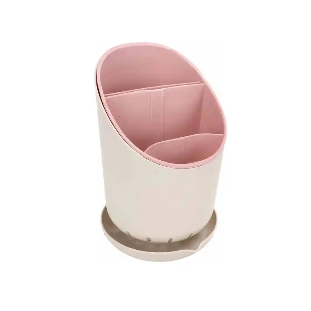 Organizador de cubiertos y utensilios de cocina diseñado para mantener el orden y facilitar el secado después del lavado. Cuenta con compartimentos internos que separan cucharas, tenedores, cuchillos y palillos, permitiendo una organización práctica y visual. Su base con orificios de drenaje y bandeja recolectora evita la acumulación de agua, manteniendo la encimera limpia y seca. Ideal para cocinas modernas y espacios reducidos.