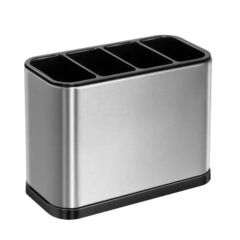 Organiza tus cubiertos de manera práctica y elegante con este portacubiertos de acero inoxidable, diseñado para mantener tu cocina limpia y funcional. Cuenta con 4 compartimentos que permiten separar cucharas, tenedores, cuchillos y otros utensilios sin mezclarlos, facilitando el acceso y evitando desorden. Además, su base firme evita deslizamientos y permite que los utensilios se sequen correctamente sin acumular humedad. Medidas. Alto 13 cm, largo 18 cm, ancho 9 cm