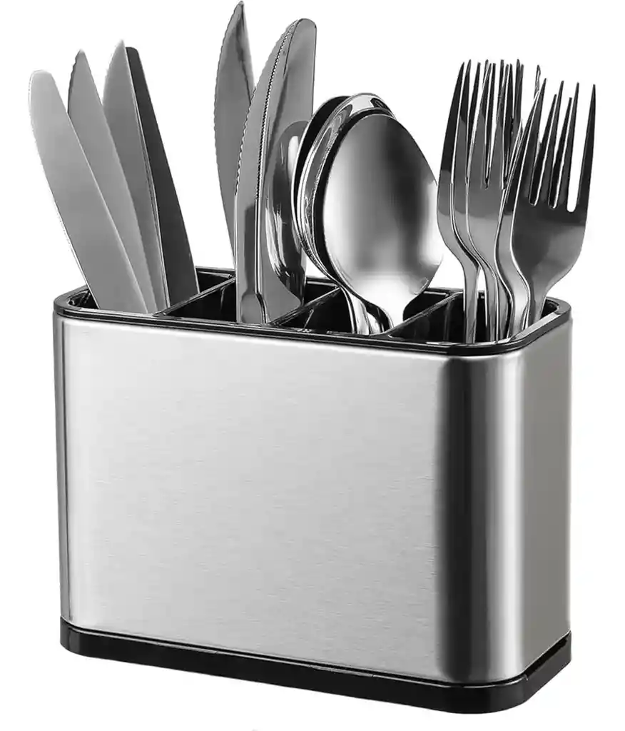 Escurridor Organizador Cubiertos Acero Inoxidable X4 Compartimientos Cocina Su diseño versátil también lo hace ideal para organizar utensilios de oficina, brochas de maquillaje o herramientas pequeñas. DESCRIPCION EHC Este Escurridor Organizador de Cubiertos de Acero Inoxidable es la solución perfecta para mantener tu cocina limpia y ordenada. Con su diseño elegante y resistente, permite organizar eficientemente cuchillos, cucharas, tenedores y otros utensilios en sus cuatro compartimentos. Su estructura de acero inoxidable no solo le otorga durabilidad y resistencia a la corrosión, sino que también facilita su limpieza y mantenimiento. Además de su funcionalidad, este escurridor cuenta con un sistema de drenaje en la parte inferior que evita la acumulación de agua, manteniendo los cubiertos secos y libres de bacterias. Su diseño compacto lo hace ideal para colocarlo en la encimera, fregadero o lavaplatos sin ocupar demasiado espacio. Un complemento imprescindible para cualquier cocina moderna. CARACTERISTICAS -Material de acero inoxidable resistente a la corrosión -Cuatro compartimentos para organizar cubiertos -Diseño elegante y moderno -Sistema de drenaje en la base -Fácil de limpiar y mantener -Tamaño compacto ideal para cualquier cocina -Apto para cuchillos, cucharas, tenedores y otros utensilios -Base antideslizante para mayor estabilidad -Altura de 13 cm, perfecta para diferentes tipos de cubiertos -No retiene olores ni humedad -Resistente a golpes y ralladuras -Ligero y fácil de trasladar Medidas: Alto: 13cm Ancho: 18cm Largo: 8.5cm Peso: 403g QUE INCLUYE LA COMPRA x1 Organizador Cubiertos