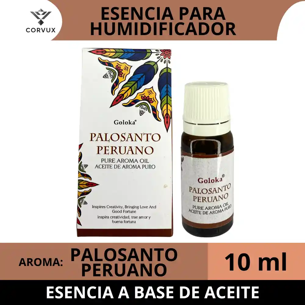 A base de aceite • Uso exclusivo en humidificadores compatibles Disfruta la energía mística y el aroma purificador del Palo Santo Peruano, una esencia natural elaborada por Goloka® con aceites aromáticos de alta calidad. Su fragancia amaderada y suave crea un ambiente de paz, claridad y equilibrio espiritual, ayudando a renovar las energías del hogar o lugar de trabajo. 🪵 Características principales: ✦ Aroma amaderado, dulce y ligeramente cítrico. ✦ Ideal para meditación, relajación y limpieza energética del ambiente. ✦ Frasco ámbar de 10 ml que conserva mejor la pureza del aceite. ✦ Fabricado en India por Goloka Seva Foundation, marca reconocida por su excelencia en aromaterapia natural. ⚠️ Importante: Esta esencia es a base de aceite, por lo tanto, solo debe utilizarse en humidificadores o difusores diseñados para esencias oleosas. 👉 Usarla en humidificadores de agua pura o ultrasónicos que no admitan aceites puede causar daños o averías en el equipo. 🧴 Modo de uso: Agrega de 3 a 5 gotas en el compartimiento correspondiente del difusor o humidificador compatible, y disfruta de su aroma natural por horas.