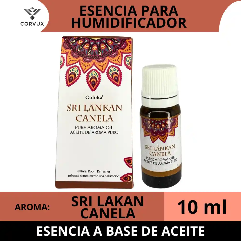 A base de aceite • Uso exclusivo en humidificadores compatibles Disfruta del cálido y envolvente aroma de la Canela de Sri Lanka, una fragancia intensa y especiada elaborada por Goloka® con aceites aromáticos de alta calidad. Su aroma despierta los sentidos, aporta energía y crea un ambiente acogedor, hogareño y reconfortante. 🔥 Características principales: ✦ Aroma cálido, dulce y especiado con notas amaderadas. ✦ Ideal para generar ambientes acogedores y revitalizantes. ✦ Frasco ámbar de 10 ml que preserva la pureza del aceite. ✦ Fabricado en India por Goloka Seva Foundation, reconocida marca de aromaterapia natural. ⚠️ Importante: Esta esencia es a base de aceite, por lo tanto, solo debe utilizarse en humidificadores o difusores diseñados para esencias oleosas. 👉 Usarla en humidificadores de agua pura o ultrasónicos que no admitan aceites puede causar daños o averías en el equipo. 🧴 Modo de uso: Agrega de 3 a 5 gotas en el compartimiento correspondiente del difusor o humidificador compatible, y disfruta de su aroma natural por horas.
