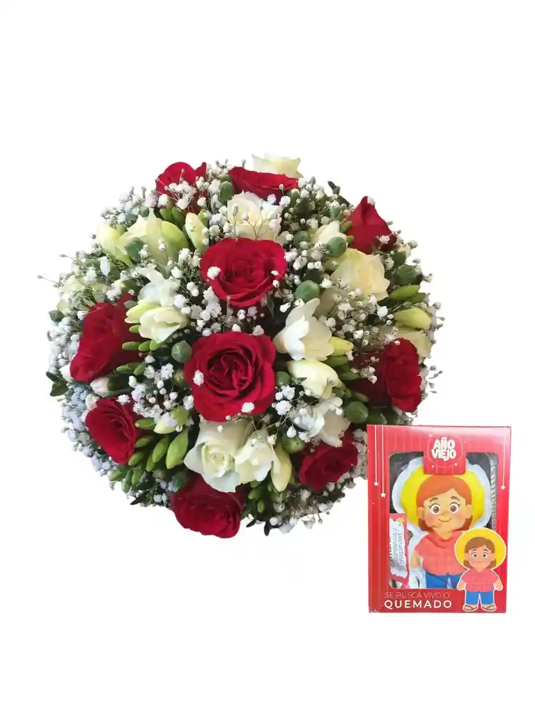 bouquet de 9 rosas rojas , 6 rosas blancas , 4 lirios blancos y gypso mas un año viejo Nota: La flor puede ser sustituida dependiendo la disponibilidad de color y del producto “Mensaje Personalizado” máximo de 30 caracteres (Dejar el mensaje en el chat, los comentarios no se previsualizan para la tienda por lo que si se dejan allí no podrá ser incluido).