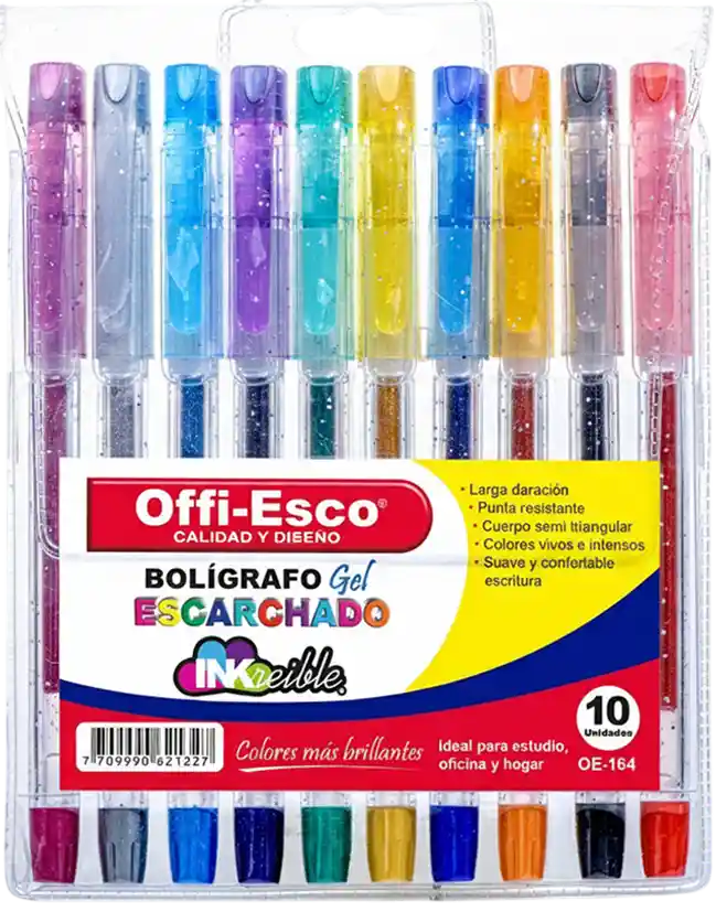 Bolígrafo de Gel Escarchado estuche x10 unidades Offi-Esco OE-164, colores vivos e intensos, punta 1.0 mm, cue...Ver más