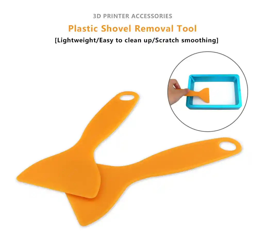 Fuerte y resistente, no es fácil de romper, duradero de usar. Ángulo redondo especial, funciona bien pero no dañará su superficie cuando retire las impresiones. Un conjunto de herramientas especiales para eliminar impresiones de la plataforma después de la impresión. También se puede usar para raspar el exceso de resina de la placa de construcción y la tina. Adecuado para la mayoría de impresoras 3D DLP SLA LA COMPRA INCLUYE: 1x ESPATULA PLASTICA
