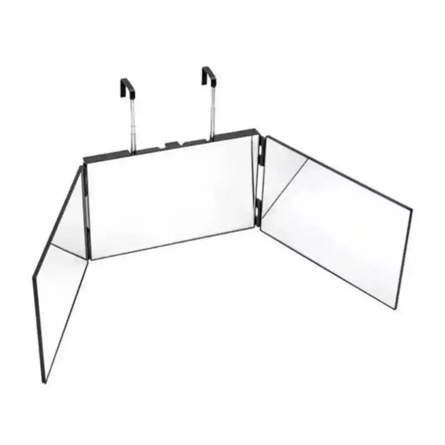 📐 Especificaciones 📏 Tamaño del espejo desplegado: 91,2 x 19,4 cm 📦 Tamaño plegado: 19,6 x 30,4 x 2,8 cm ⚖️ Peso del paquete: 1,73 kg 🧱 Material: carcasa de plástico ABS + espejo de cristal real