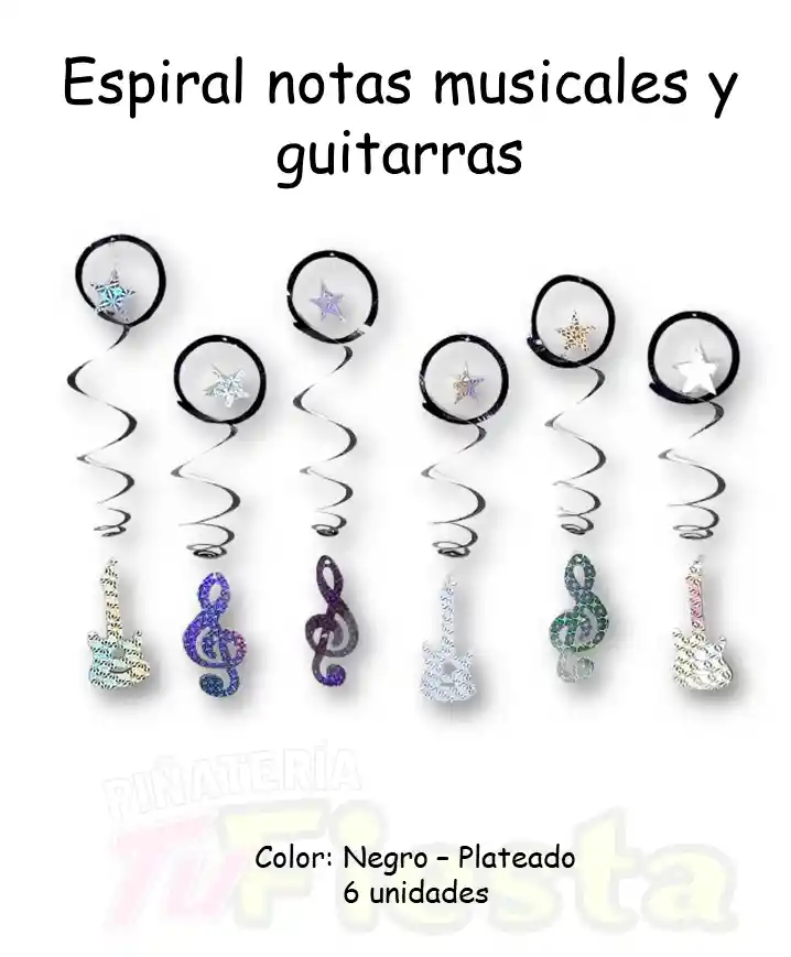 ESPIRAL NOTAS MUSICALES X6 Negro-Plateado