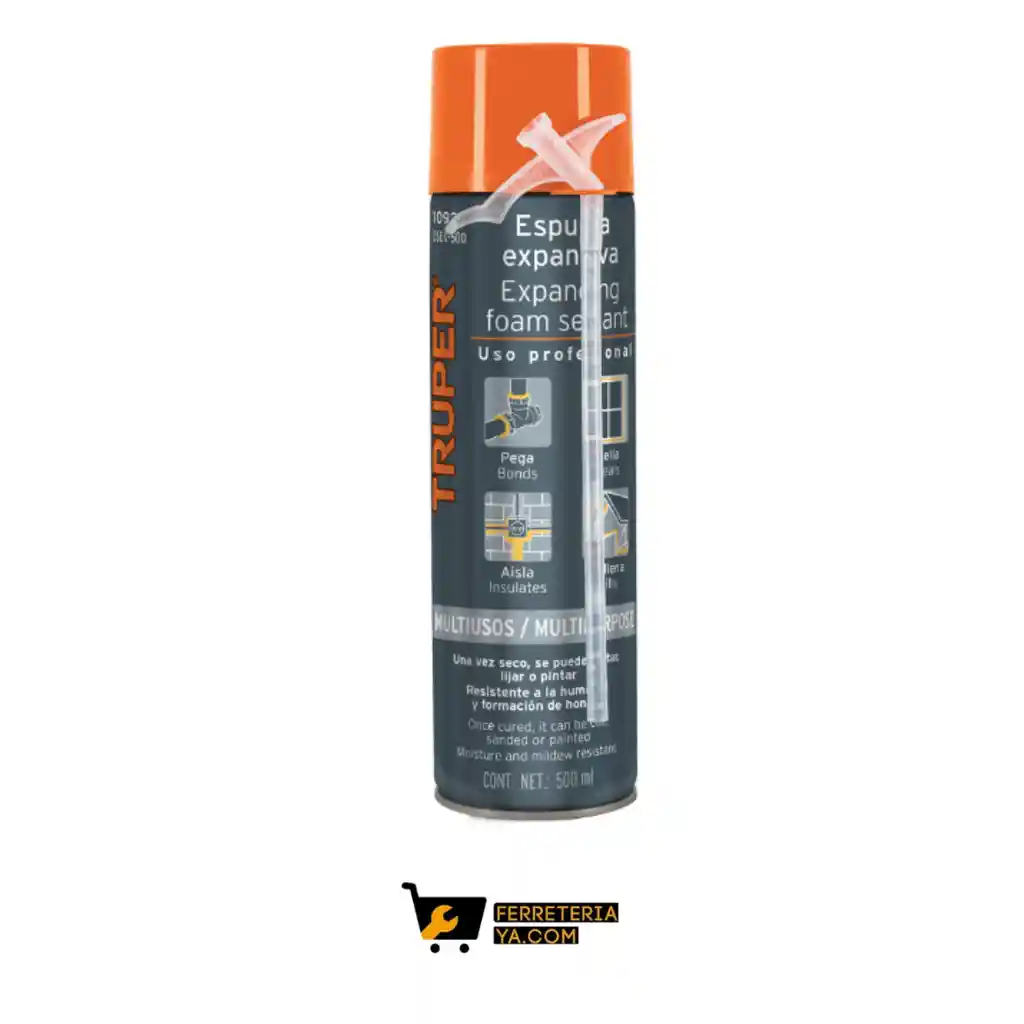 Máxima expansión, hasta 3X Secado rápido, una vez endurecido no pierde volumen y se puede lijar, cortar o pintar Se adhiere a una gran variedad de materiales de construcción Aplicaciones: pega, sella y rellena huecos, grietas y espacios amplios aún si son irregulares. Evita el paso de aire, suciedad, agua, insectos y roedores. Es un aislante eléctrico, térmico y acústico Aplicar el producto con la lata invertida