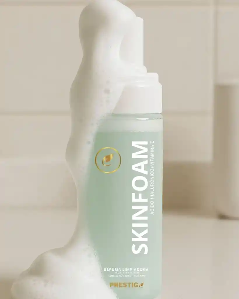 Skinfoam: Limpieza profunda sin resecar. Nuestra espuma limpiadora con ácido hialurónico elimina impurezas mientras hidrata tu piel. Su fórmula con tensoactivos vegetales es ultra suave, ideal para piel sensible. Sin irritación, sin resequedad, solo frescura y luminosidad. - Limpia, hidrata y revitaliza en un solo paso. - Vegana y respetuosa con tu piel y el planeta. Presentación: 200 mL ¡Dale a tu piel el cuidado que merece!