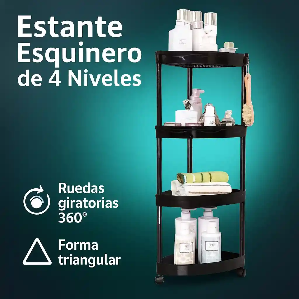 🛒 Estante Esquinero Organizador de 4 Niveles con Ruedas 🛒 Dile adiós al desorden y aprovecha al máximo cada rincón de tu hogar con este práctico estante esquinero de 4 niveles. Su diseño inteligente y resistente lo convierte en el aliado perfecto para organizar tu baño, cocina, lavandería o incluso la oficina. Características principales 🔹 Diseño esquinero triangular: pensado para aprovechar al máximo esos espacios que normalmente se desperdician. 🔹 4 niveles amplios: cada repisa mide aprox. 36 cm de ancho y 26 cm de alto, ideales para botellas, frascos, toallas, detergentes o artículos de aseo. 🔹 Material resistente: fabricado en plástico PP, con columnas tubulares encastrables que no requieren herramientas para su armado. 🔹 Bandejas perforadas: permiten el drenaje del agua, evitando acumulación de humedad y malos olores. 🔹 Movilidad total: base con ruedas giratorias de 360° (al menos dos con freno) que facilitan trasladarlo sin esfuerzo. 🔹 Altura total: aprox. 87 cm, perfecto para mantener todo al alcance de la mano. 🔹 Fácil limpieza y armado: se desmonta en segundos para higienizarlo o ajustar la altura entre repisas. Usos recomendados 🚿 Baño: organiza shampoos, cremas, jabones, toallas pequeñas y accesorios. 🍳 Cocina: guarda frascos, especias, botellas de aceite o recipientes. 🧺 Lavandería: ideal para detergentes, suavizantes, cepillos y paños. 🏢 Oficina o estudio: perfecto para carpetas, útiles, cajas organizadoras o artículos de papelería. 💡 Beneficios ✅ Optimiza espacios reducidos ✅ Resistente y duradero ✅ Fácil de mover gracias a sus ruedas ✅ Diseño moderno y funcional ✅ Ideal para mantener la casa ordenada y elegante Un producto práctico, versátil y económico que hará tu vida más fácil. ¡Convierte cada rincón en un espacio útil con este Estante Esquinero de 4 Niveles con Ruedas!