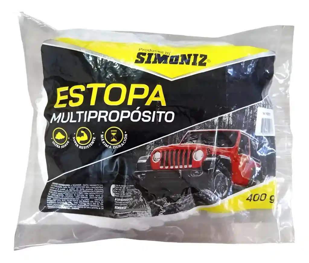 La estopa multipropósito super brillo es un elemento esencial tanto para el cuidado del automóvil como para tareas domésticas esta estopa, con propiedades de súper brillo, es ideal para aplicar y pulir productos de limpieza y abrillantadores en la superficie de tu automóvil, asegurando un acabado reluciente. Además, su versatilidad se extiende al hogar, siendo útil para la limpieza y el pulido en diversas superficies la estopa multipropósito super brillo es suave, absorbente y no raya, lo que la convierte en una herramienta confiable para mantener tanto tu automóvil como tu hogar en condiciones impecables. CARACTERÍSTICAS - Estopa multipropósito con propiedades de súper brillo. - Ideal para aplicar y pulir productos de limpieza y abrillantadores en el automóvil. - Aporta un acabado reluciente y sin rayas. - Suavidad y absorbencia para una limpieza eficaz. - Versátil y adecuada para tareas domésticas. - No raya las superficies delicadas. - Puede utilizarse en el automóvil, muebles, electrodomésticos, etc. - Material duradero para un uso prolongado. - Fácil de manejar y manipular. - Herramienta esencial para el cuidado del automóvil y tareas de limpieza en el hogar. MEDIDAS Cantidad: 400 g Largo Bolsa: 36 cm Ancho Bolsa: 30 cm