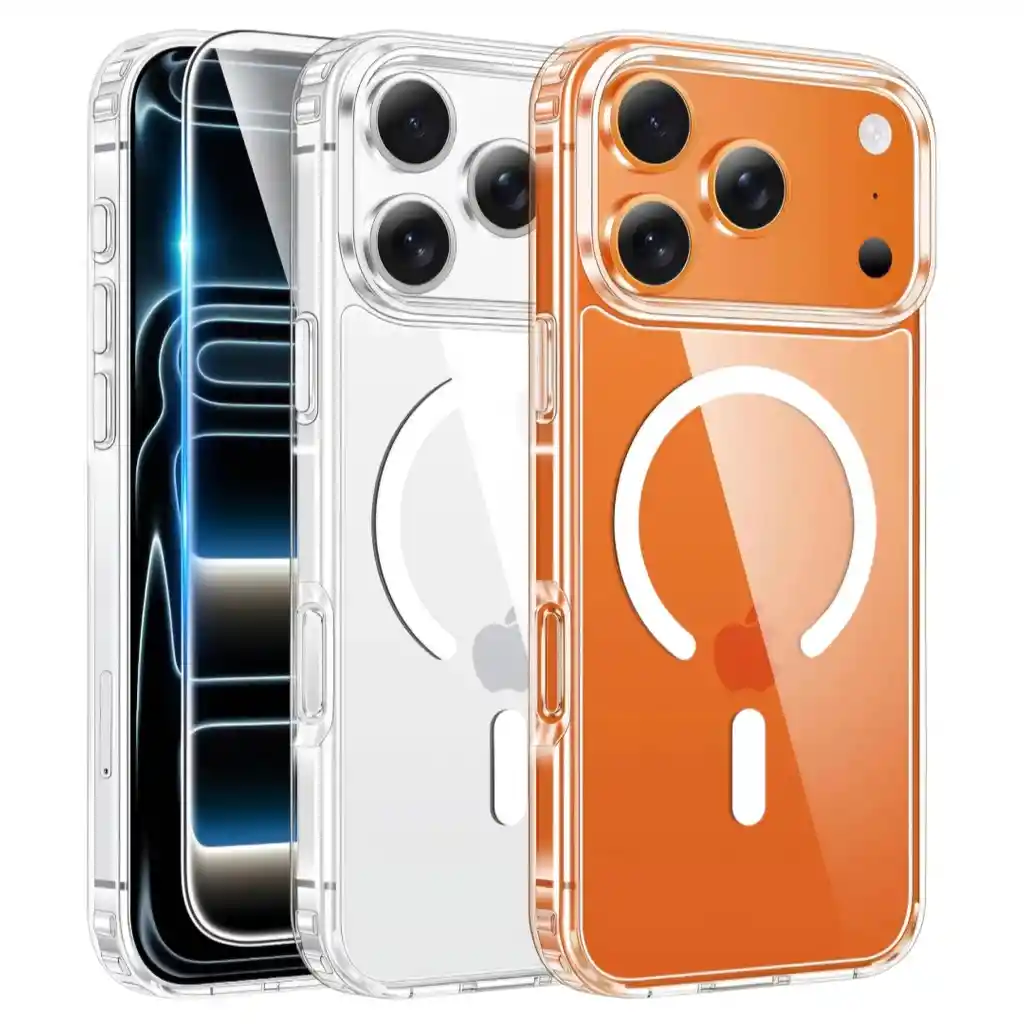 Estuche Magnético Magsafe Transparente Para Iphone 17 Pro Max ¨Alta Protección/Anti decoloración /Transparente¨ No Se Pone Amarillo O Decolora Con El Tiempo Diseño Transparente Con Respaldo De Pc Duro Y Lados De Tpu Suave. Protección Adicional En Los 4 Lados Por Espesamiento Adicional. Lo Que Hace Que Esta Funda Sea Aún Más Especial Es El Anillo Magnético En La Parte Posterior De La Funda. Conexión Extra Fuerte Con Teléfono Y Cargador. Excelente Calidad, Diseño Elegante, Se Destacan Entre La Multitud Con Un Nuevo Aspecto Para Su Teléfono. El Ajuste Perfecto, El Diseño Inteligente Le Permiten Enchufar El Cargador Y Acceder A Todas Las Funciones Sin Quitar El Estuche. Proporciona Protección Para Su Teléfono Contra El Polvo Y Los Arañazos En El Uso Diario. Diseño Híbrido: La Combinación De Un Gel Protector De Parachoques De Tpu Para Rodear Los Bordes Y Un Plástico Endurecido Para Cubrir La Parte Posterior, Este Diseño De Dos Tonos Le Brinda Lo Mejor De Ambos Mundos Diseño Minimalista, Elegante Y Resistente, Robusta Protección. A Prueba De Golpes: Las Esquinas Reforzadas Con Tecnología Air Cushion Permiten Que Su Iphone Maneje Caídas Desde Alturas Insanas. La Cubierta De Alta Resistencia Al Impacto Asegura Que Su Iphone Se Vea Y Se Sienta Increíble Sin Agregar Ningún Grosor Excesivo De Las Especificaciones De Fábrica. Agarre, Comodidad Y Estilo: Un Perfil Delgado Le Permite Tener Una Carcasa Antideslizante, Con Un Perfil Táctil, ¡Esto Lo Hace Imprescindible Para Su Nuevo Iphone! Material Antideslizante, Cómodo Y Duradero. Esquinas Apoyadas Por La Tecnología De Amortiguación De Aire Que Absorbe Y Dispersa La Fuerza A Través Del Tpu. Caracteristicas Principales Protección De Armadura Anti Choque Material Pc + Tpu Protección Lateral Adicional 4 Ajuste Perfecto Anillo Magnético (Para Magsafe) Soporte Cargador Magsafe Tpu + Pc + Módulo Magsafe A Prueba De Choques Delgado Y Claro No Es Fácil De Amarillear